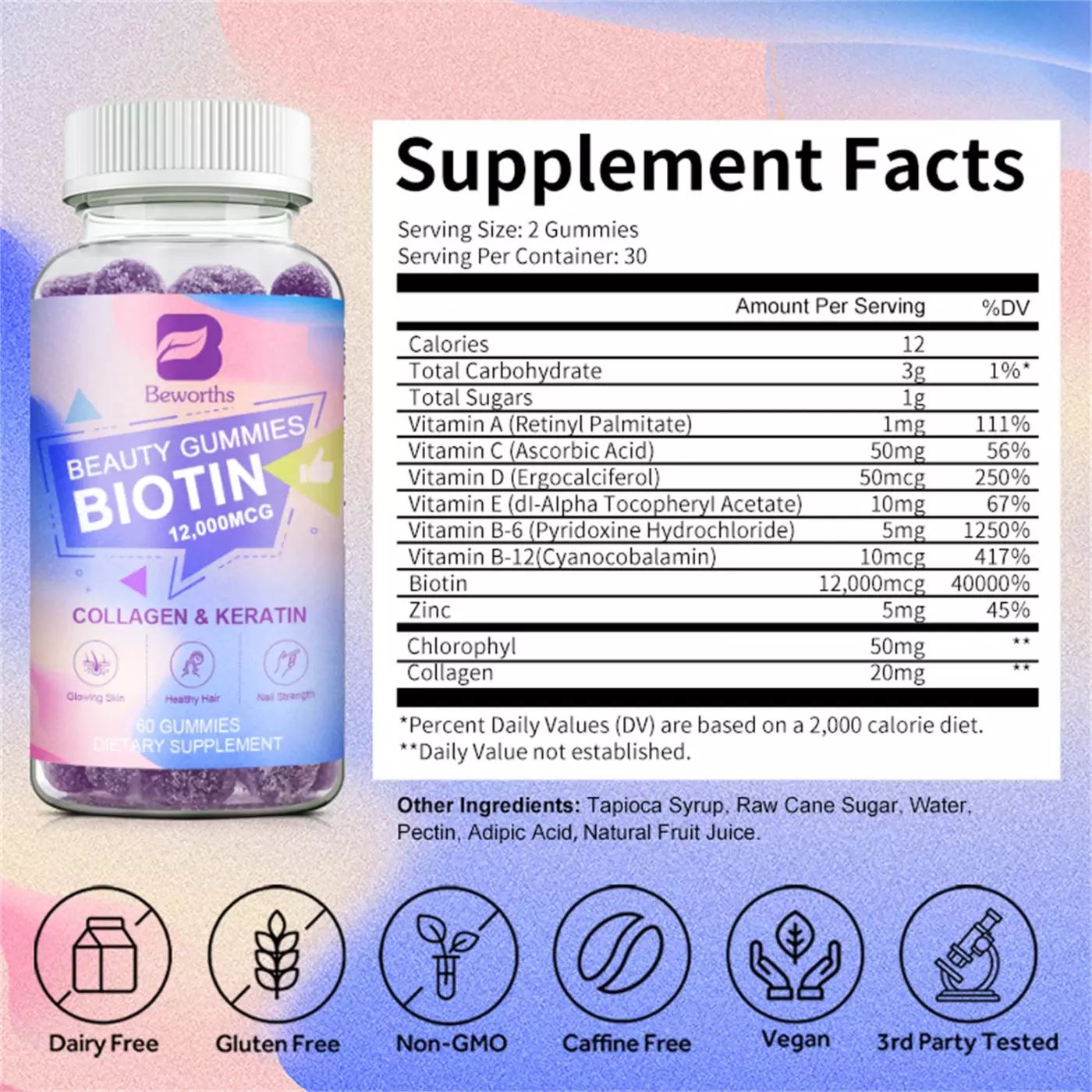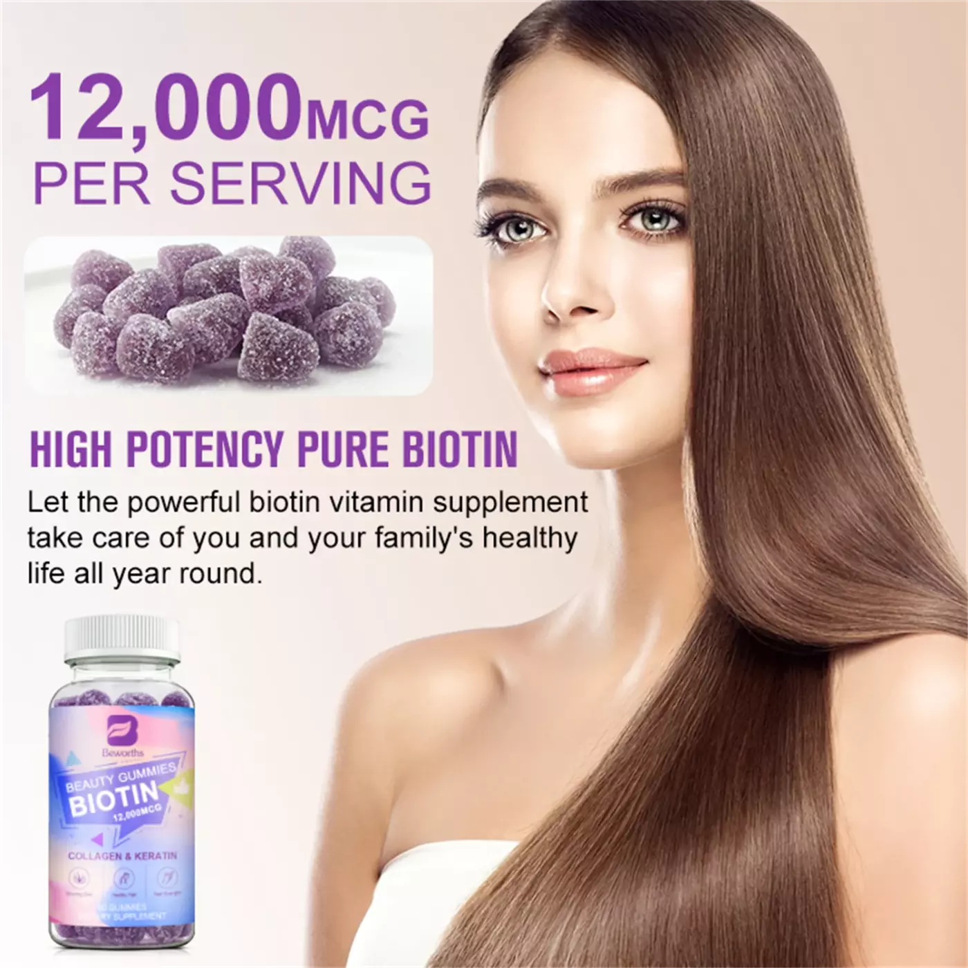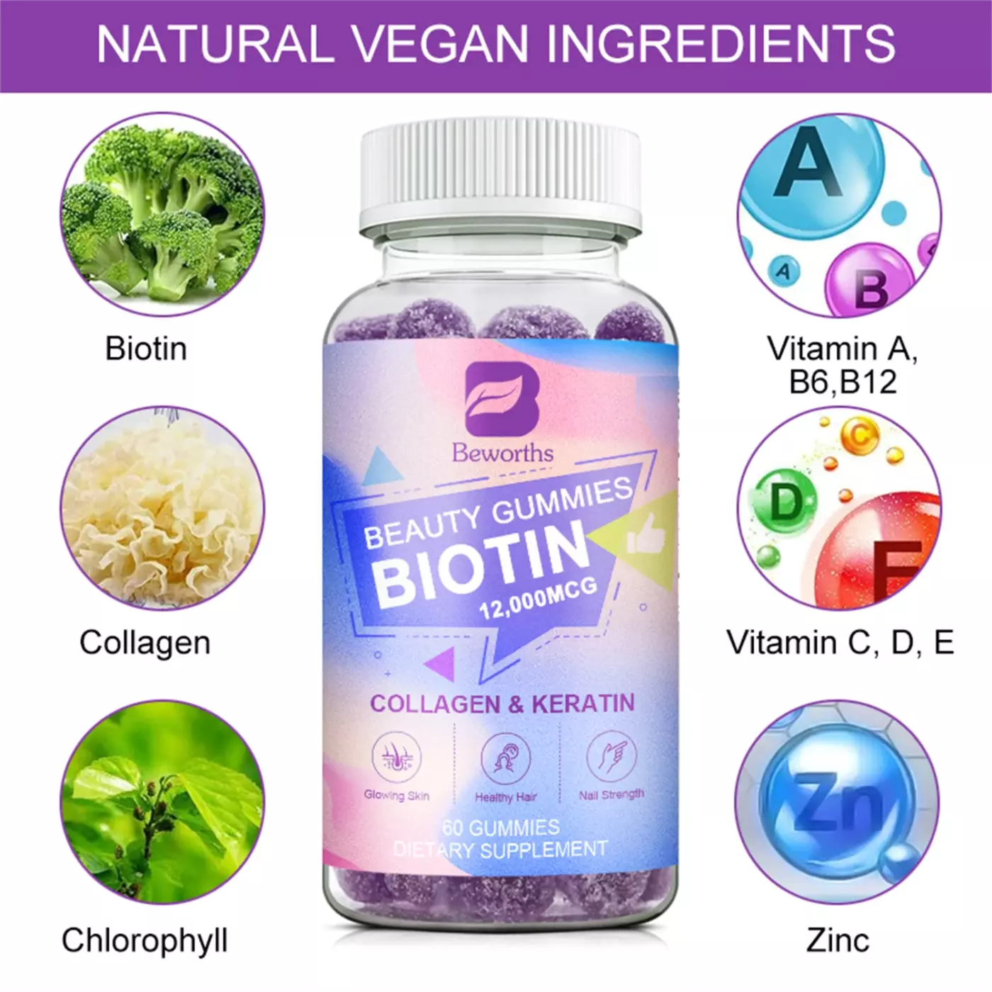 Faites vos coursesBezorths beauty gummies biotin 12000MCG collagen and keratin